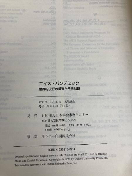 エイズ・パンデミック―世界的流行の構造と予防戦略 日本学会事務センター ジョナサン・マン