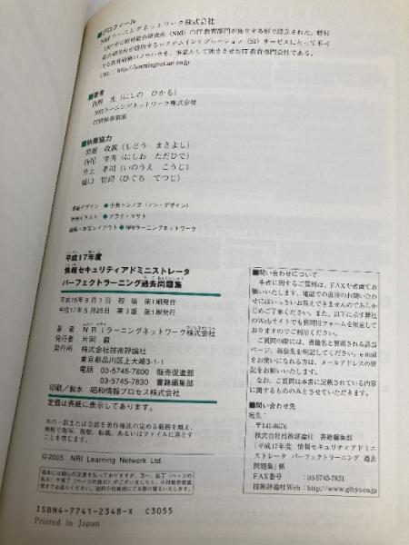平成17年度 情報セキュリティアドミニストレータ パーフェクトラーニング過去問題集 技術評論社 NRIラーニングネットワーク