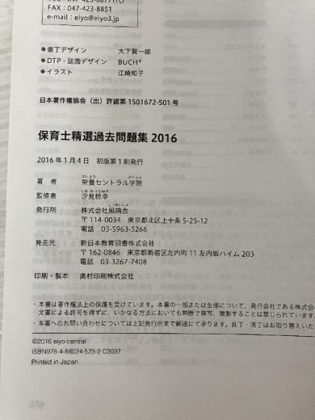 保育士精選過去問題集2016 風鳴舎 栄養セントラル学院