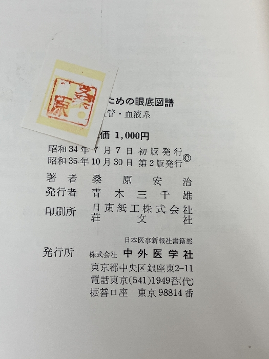 【※強いシミあり】内科医のための眼底図譜1 血管・血液系  中外医学社  東京医科大学教授 桑原 安治