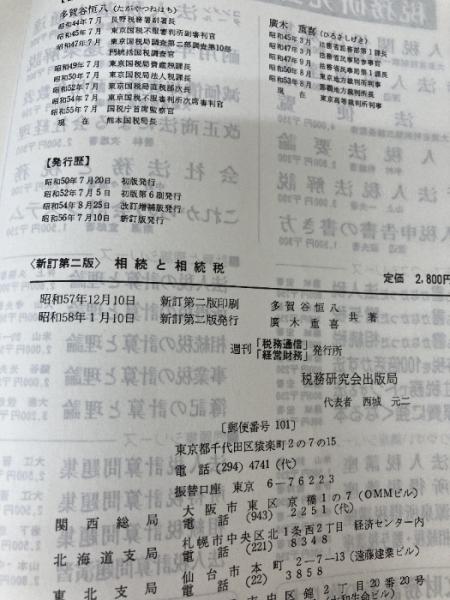 【イタミ有り】相続と相続税 新訂第2版: 相続税申告の手引 税務研究会 多賀 谷恒八