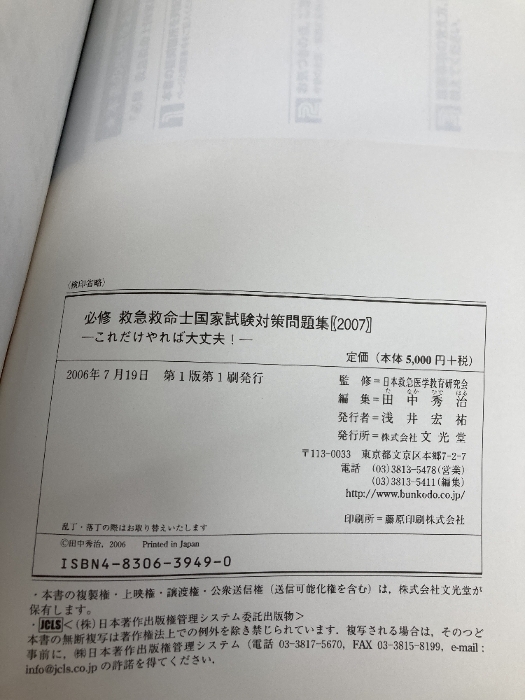 必修救急救命士国家試験対策問題集 2007 文光堂 田中 秀治