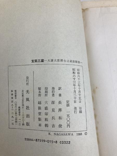 【※イタミ有】玄奘三蔵: 大唐大慈恩寺三蔵法師伝 (光風社選書) 光風社出版 慧立