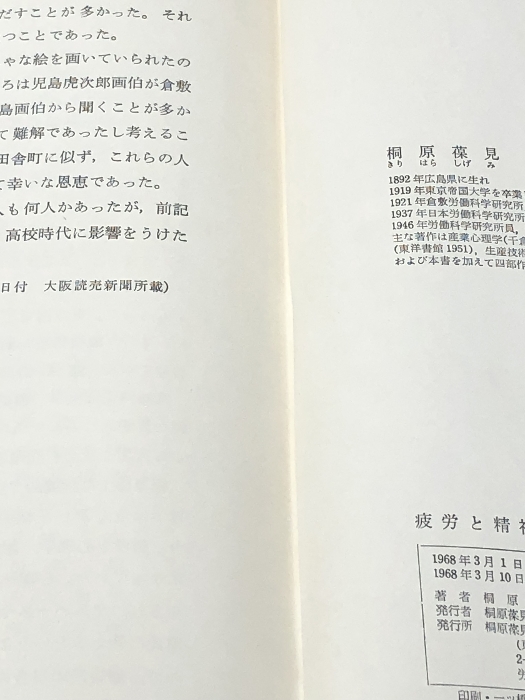 疲労と精神衛生 (1968年) 桐原葆見博士喜寿記念刊行会 桐原 葆見※イタミ有