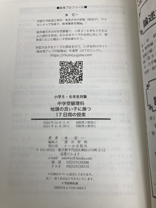 中学受験理科 地頭の良い子に勝つ17日間の授業 (YELL books) エール出版社 東 荘一