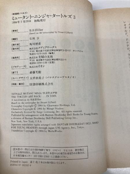【※イタミ有】ミュータントニンジャタートルズ 3 (映画版ノベルズ) KADOKAWA(アスキー・メディアワ) B.B. ヒラー