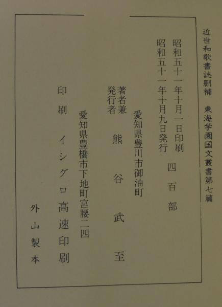 近世和歌書誌刪補 <東海学園国文叢書 第7篇>