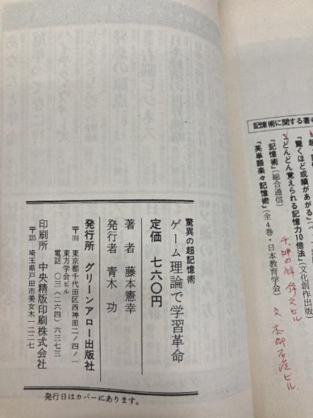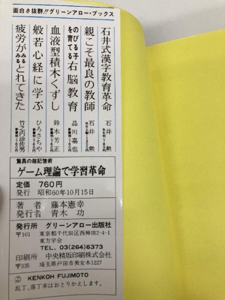 ゲ-ム理論で学習革命: 驚異の超記憶術 脳力20倍アップ (グリーンアロー・ブックス) Bbmfマガジン 藤本 憲幸