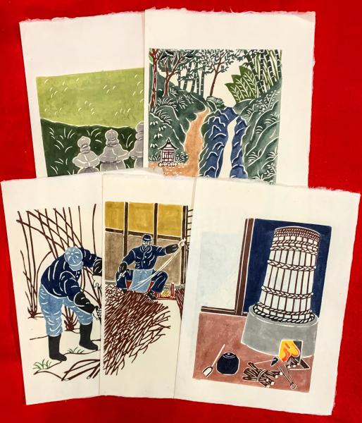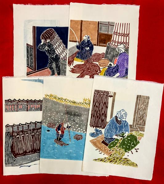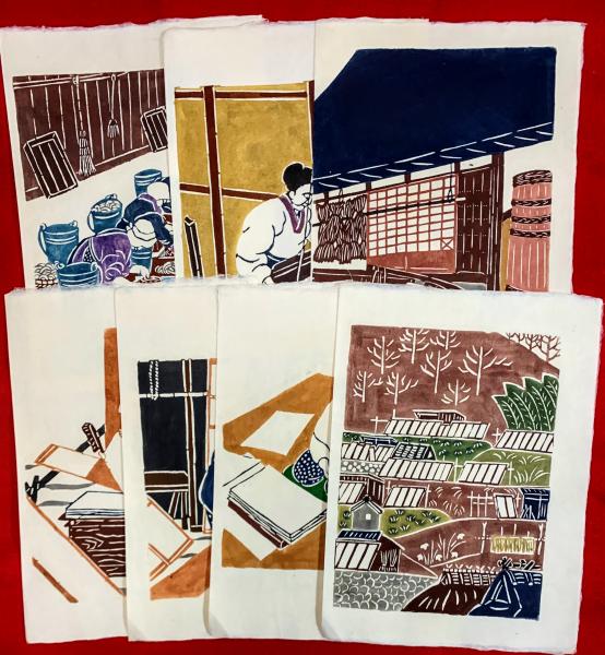 • 解説 手漉和紙の製法、型繪染(24×34)、彩色、21枚・22圖