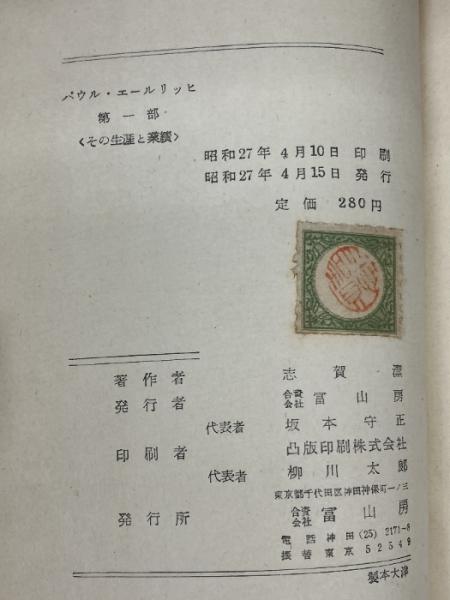 パウル・エールリッヒ〈第1部〉その生涯と業績 (1952年)  冨山房  志賀潔