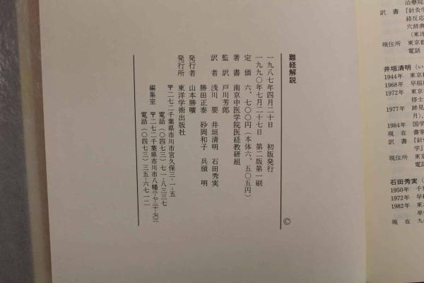 5 難経解説 編/南京中医学院医経教研組 監訳/東京大学文学部教授 戸川芳郎