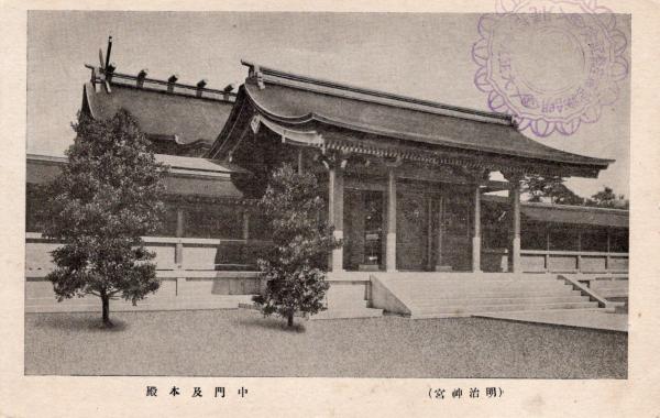戦前絵葉書〇東京 明治神宮 中門及び本殿 古写真○和本古書古文書