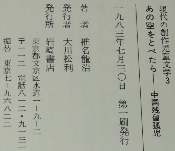 • 解説 現代の創作児童文学3 あの空をとべたら 中国残留孤児 椎名龍治 岩崎書店 1983年7月第1刷 A5判ハードカバー帯付.