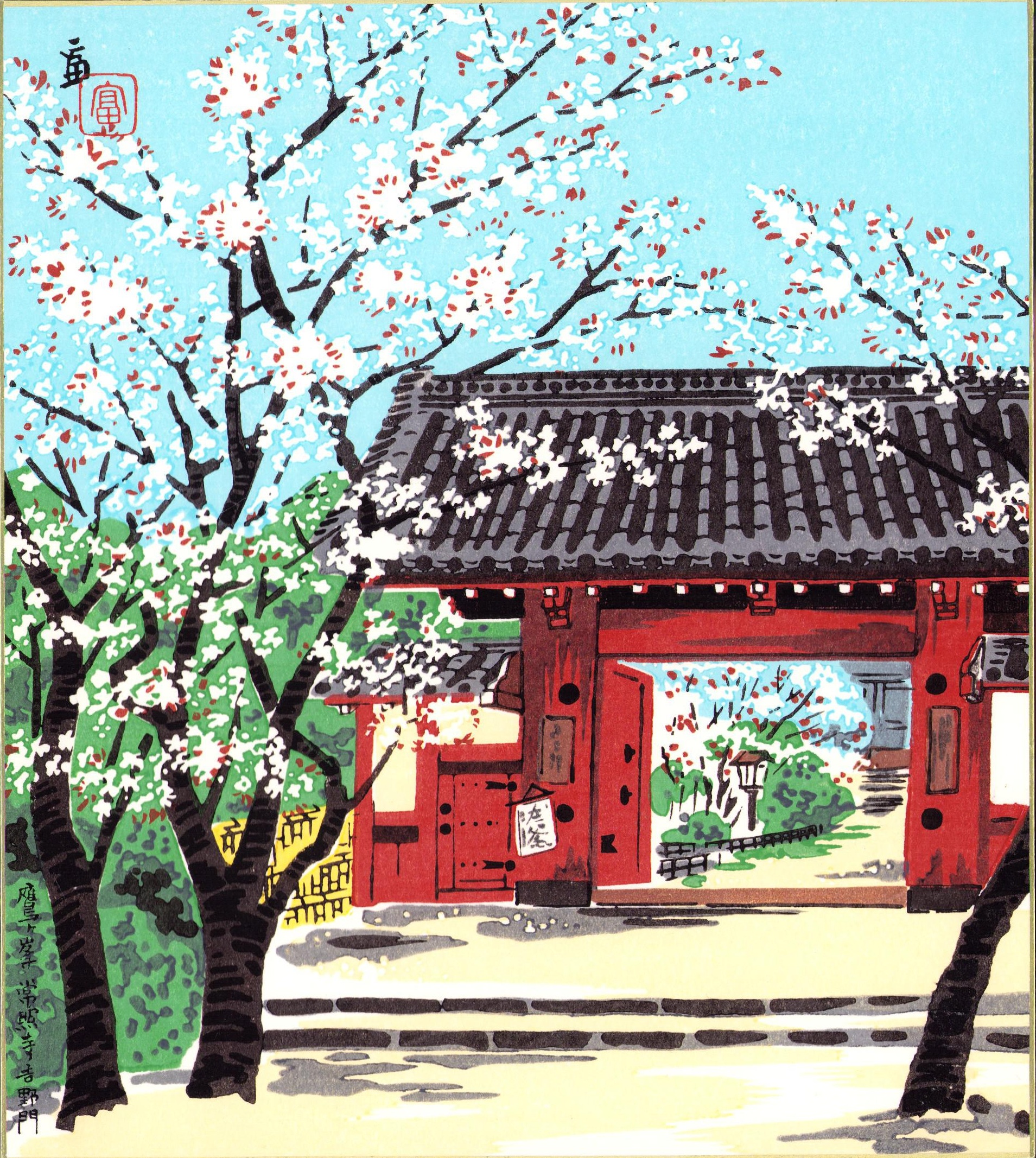 (木版画色紙)徳力富吉郎「鷹ヶ峯 常照寺吉野門」