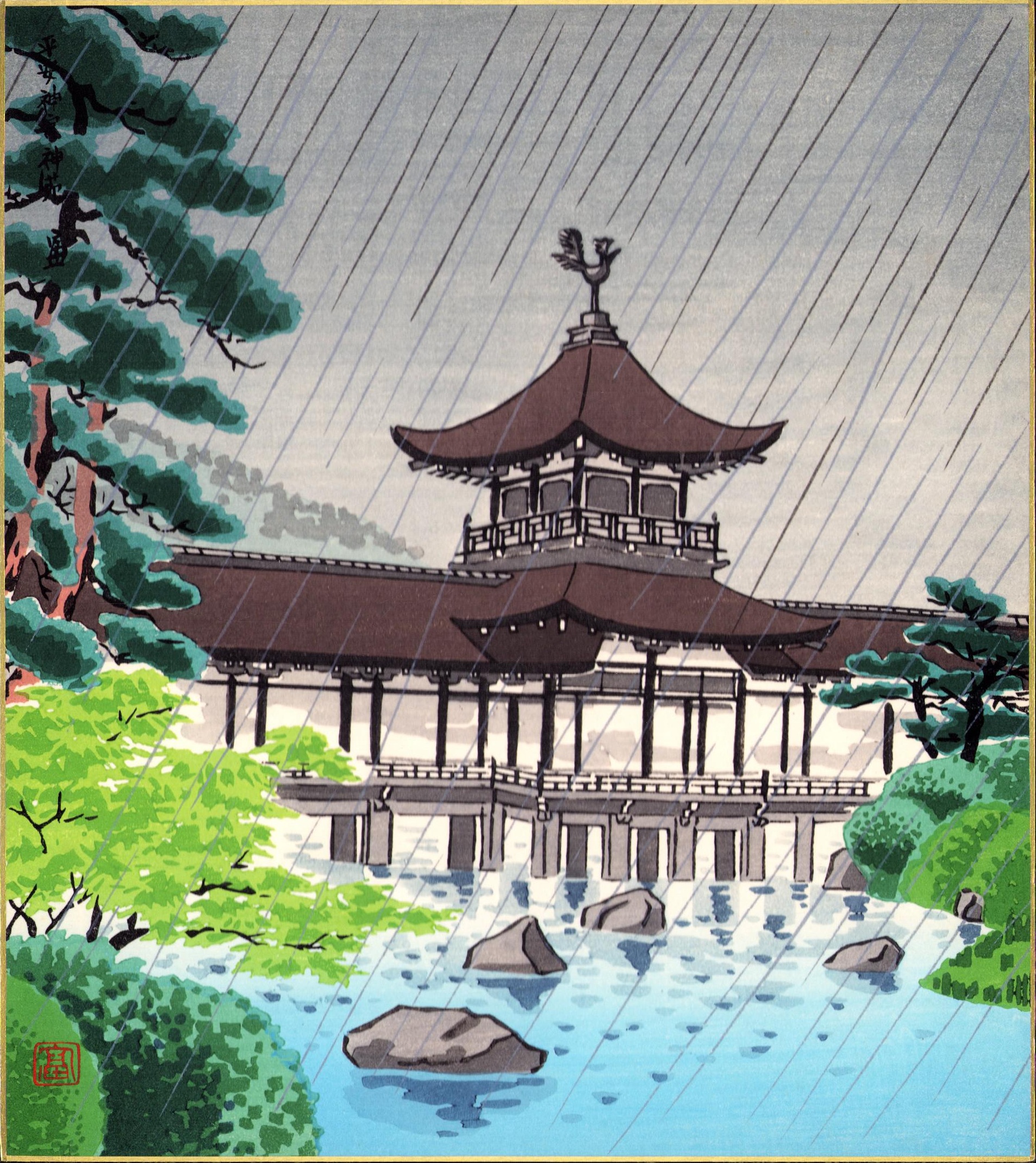 (木版画色紙)徳力富吉郎「平安神宮神苑」