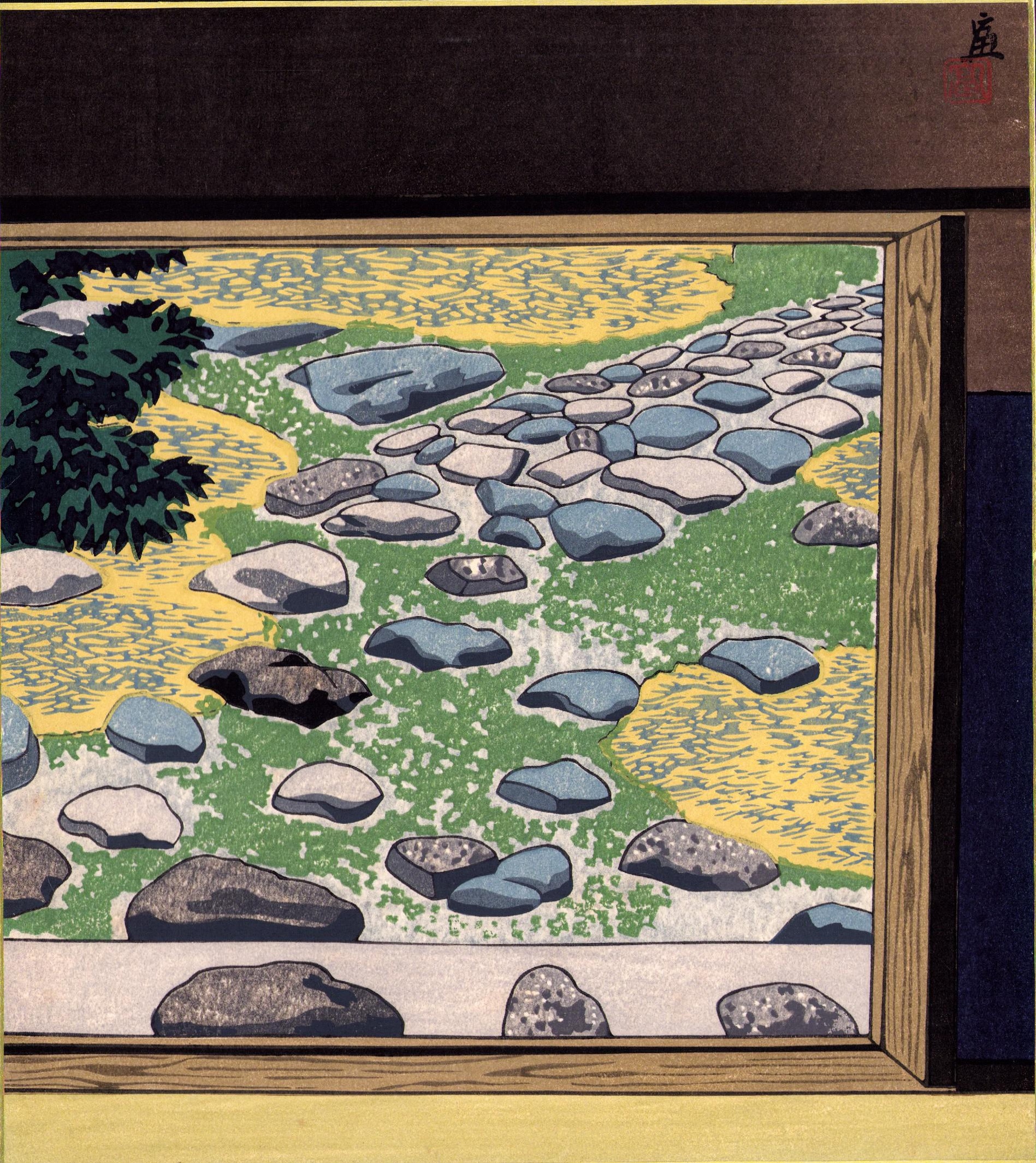 (木版画色紙)徳力富吉郎「裏千家 又隠庭前」