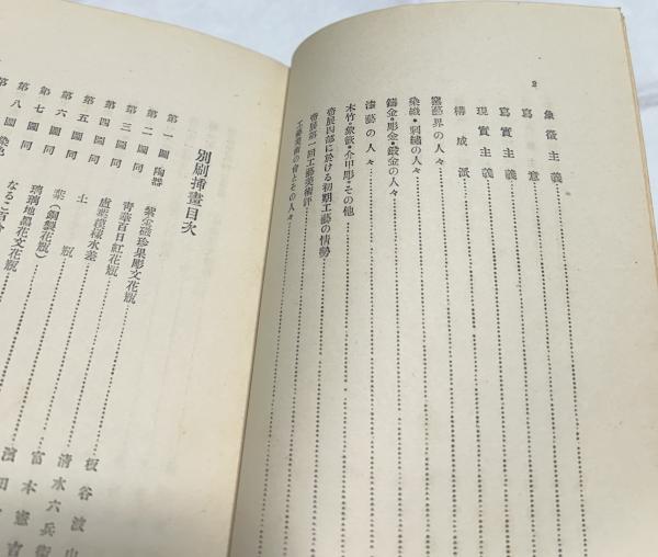 • 解説 箱(傷み)付 経年ヤケシミ 口絵モノクロ図版27点+本文216頁 窯業界の人々、染織・刺繍の人々、鋳金・彫金・鍛金の人々、漆芸の人々、木竹・象嵌・介甲彫・その他 工芸美術の会とその人々等など 四六判 昭和3年刊