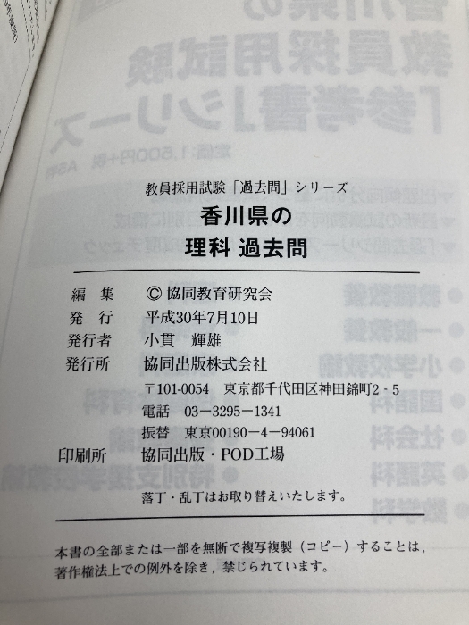 香川県の理科過去問 (2019年度版) (教員採用試験「過去問」シリーズ 7) 協同出版 協同教育研究会