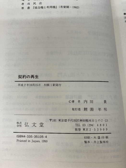 【イタミ有り】契約の再生 弘文堂 内田 貴