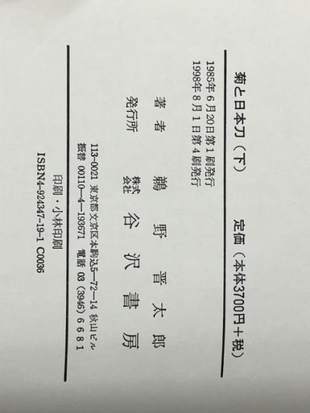 菊と日本刀〈下〉 (1985年) 谷沢書房 鵜野 晋太郎※イタミ有