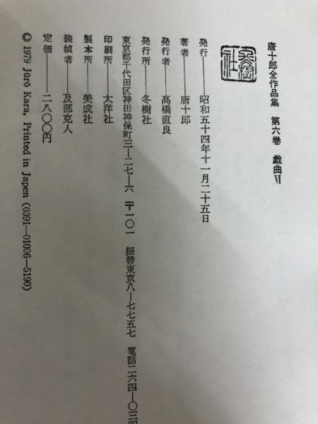 唐十郎全作品集〈第6巻〉戯曲 (1979年)