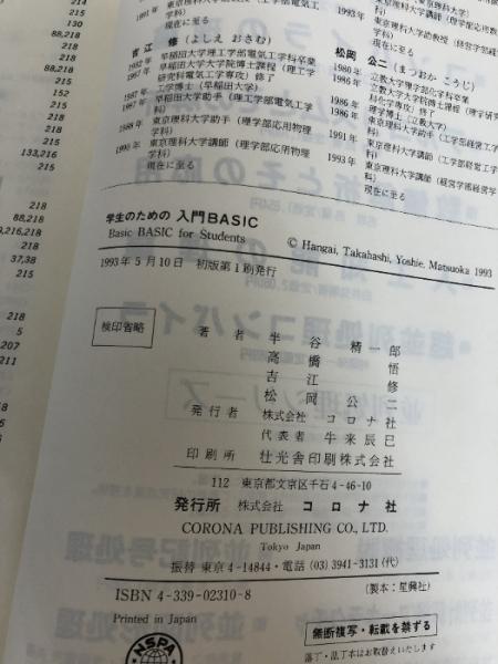 【※イタミ有り】学生のための入門BASIC コロナ社 半谷 精一郎