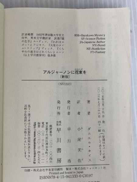 ※イタミ有。アルジャーノンに花束を〔新版〕(ハヤカワ文庫NV) 早川書房 ダニエル・キイス