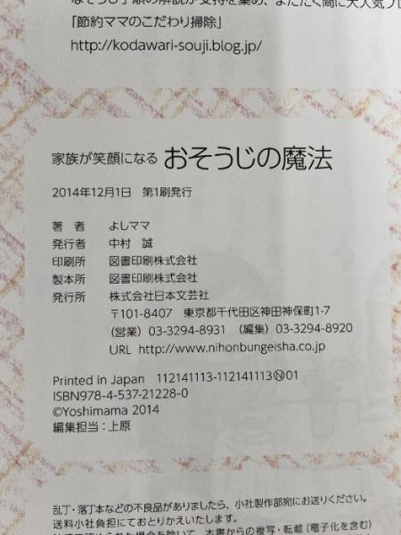 ※付録欠品。家族が笑顔になる おそうじの魔法 日本文芸社 よしママ