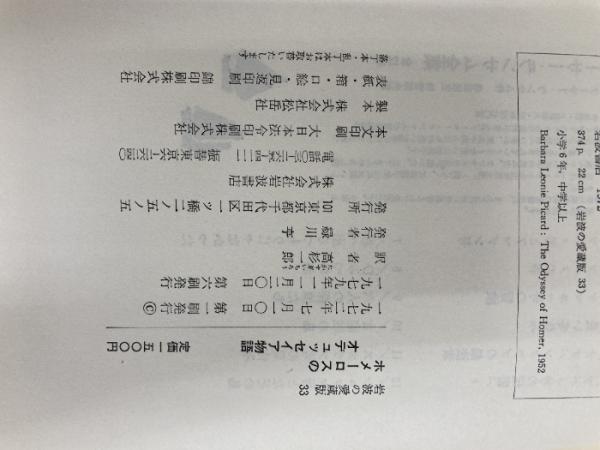 ※イタミ有。ホメーロスのオデュッセイア物語 岩波書店 バーバラ・レオニ ピカード
