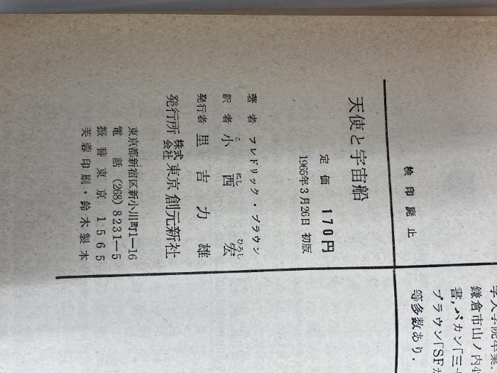 天使と宇宙船 (創元推理文庫 605-2) 東京創元社 フレドリック ブラウン