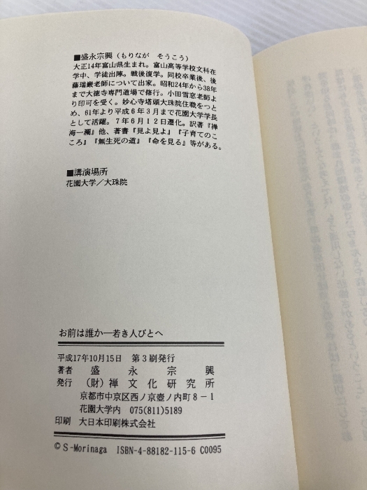 【※カバー無し】お前は誰か: 若き人びとへ 禅文化研究所 盛永 宗興
