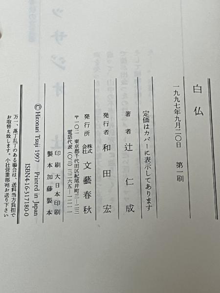 白仏 文藝春秋 辻 仁成※イタミ有