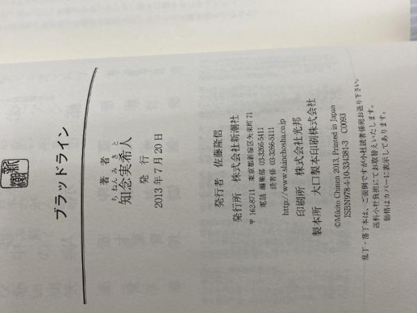 ※カバー無し。ブラッドライン 新潮社 実希人, 知念