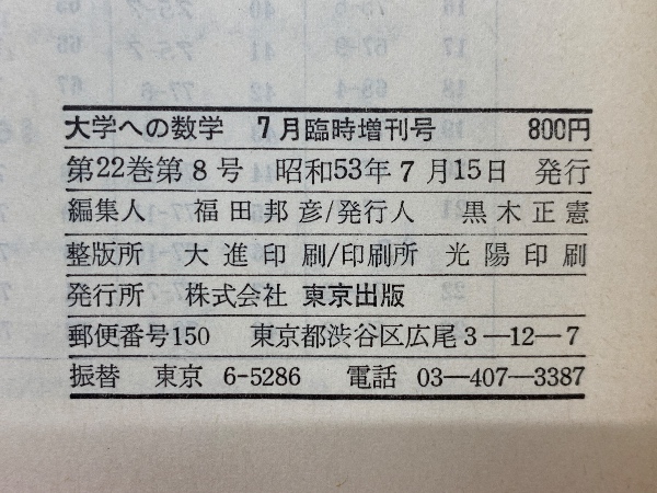 大学への数学 理系・新作問題演習 7月臨時増刊