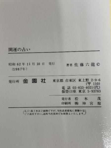 ※イタミ有。開運の占い―幸せをみちびく (Orange books) 金園社 佐藤六竜