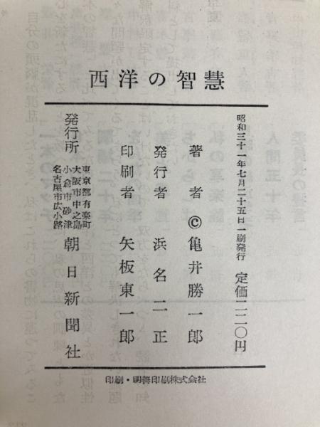 西洋の知慧―私はいかなるときいかなる智慧に学んだか (1956年) 朝日新聞社 亀井 勝一郎