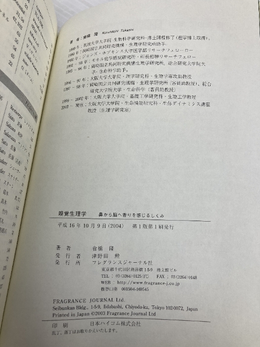 【※多数の書き込み有】嗅覚生理学: 鼻から脳へ香りを感じるしくみ フレグランスジャーナル社 倉橋 隆