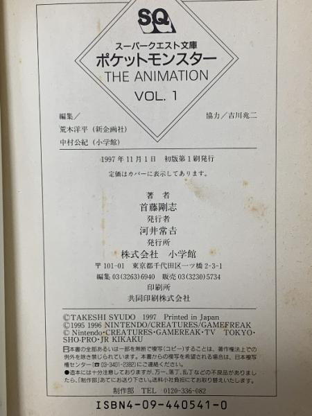 ポケットモンスター THE ANIMATION VOL.1: 旅立ち (スーパークエスト文庫 し 3-1) 小学館 首藤 剛志 1997年11月1日 初版第1刷発行