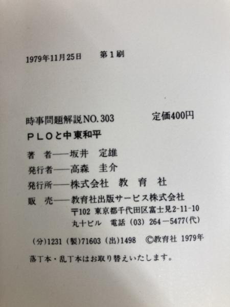 PLOと中東和平 (1979年) (入門新書―時事問題解説〈no.303〉) 教育社 坂井 定雄