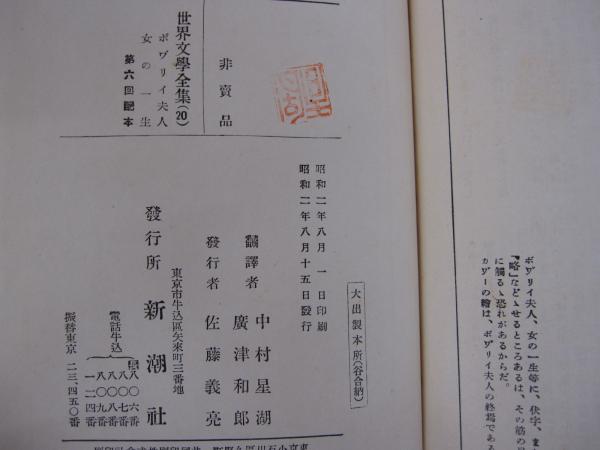 世界文學全集 第20巻 ボヷリイ夫人 女の一生