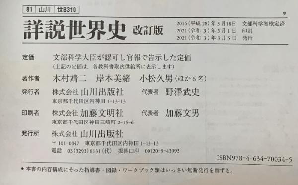 詳説世界史B 改訂版 [世B310] 文部科学省検定済教科書 【81山川/世B310】 山川出版社 木村靖二