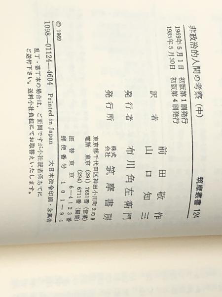 非政治的人間の考察〈中〉 (1969年) (筑摩叢書) トーマス・マン※イタミ有