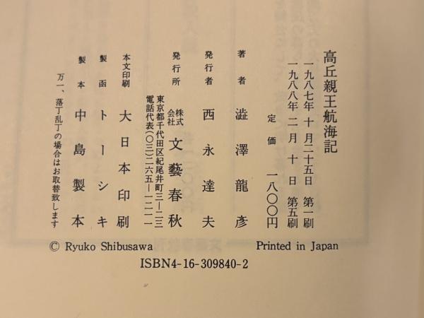 澁澤龍彦 文藝春秋 1988年(第5刷)