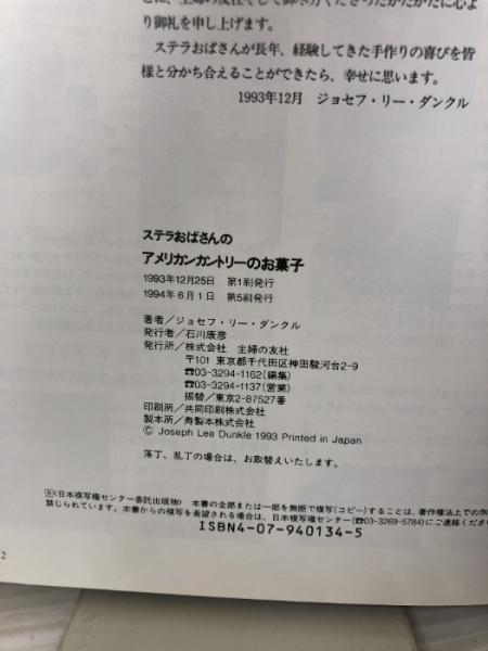 【イタミ有り】ステラおばさんのアメリカンカントリーのお菓子 主婦の友社 ジョセフ・リー ダンクル