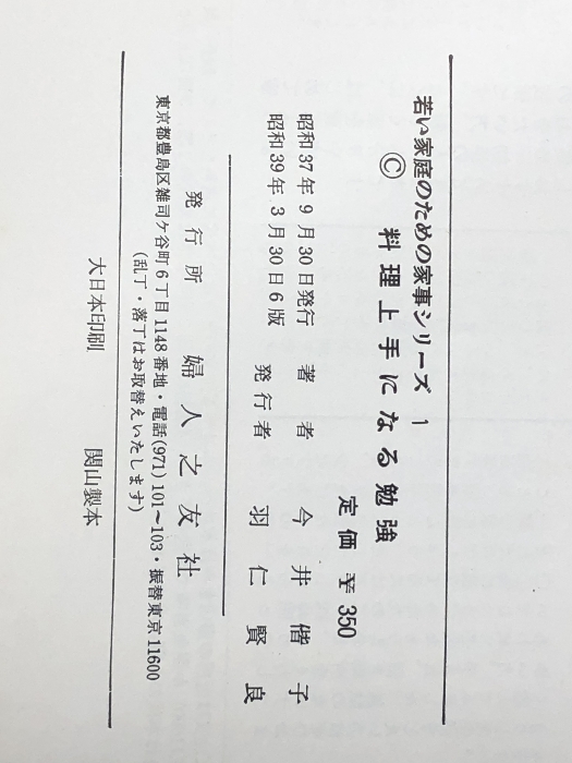 料理上手になる勉強 (1962年) (若い家庭のための家事シリーズ〈第1〉) 婦人之友社 今井 偕子※イタミ有※カバー無し