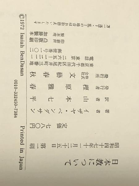 日本教について―あるユダヤ人への手紙 文藝春秋 山本七平※イタミ有