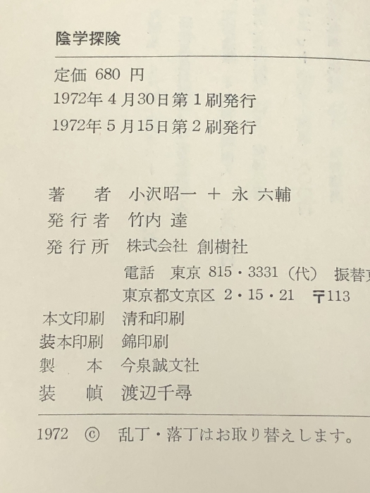 陰学探険 創樹社 小沢昭一※イタミ有