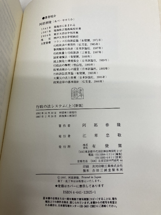 行政の法システム 上 新版 有斐閣 阿部 泰隆