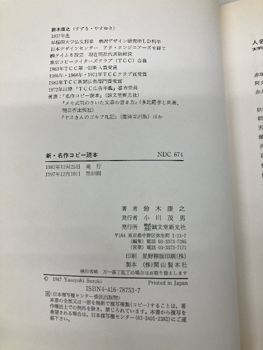 新・名作コピー読本 誠文堂新光社 鈴木 康之