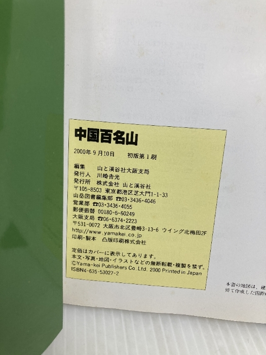 【イタミ有り】中国百名山 山と溪谷社 山と溪谷社大阪支局
